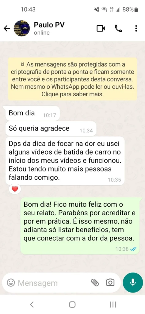 Você sabia que a maioria dos consultores de proteção veicular não sabe como criar campanhas de mensagens que realmente convertem? Com o esse conhecimento, você não mais depender de ninguém e vai transformar suas campanhas em verdadeiras máquinas de vendas. Comece a ter resultados agora mesmo!
